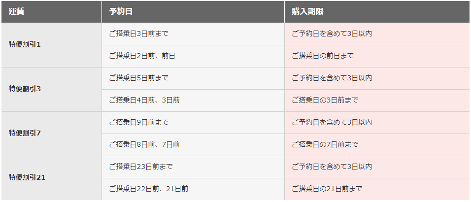 特便割引は「早く予定を確定させてくれたお客さんには割安の運賃でサービスしますよ」って料金です。