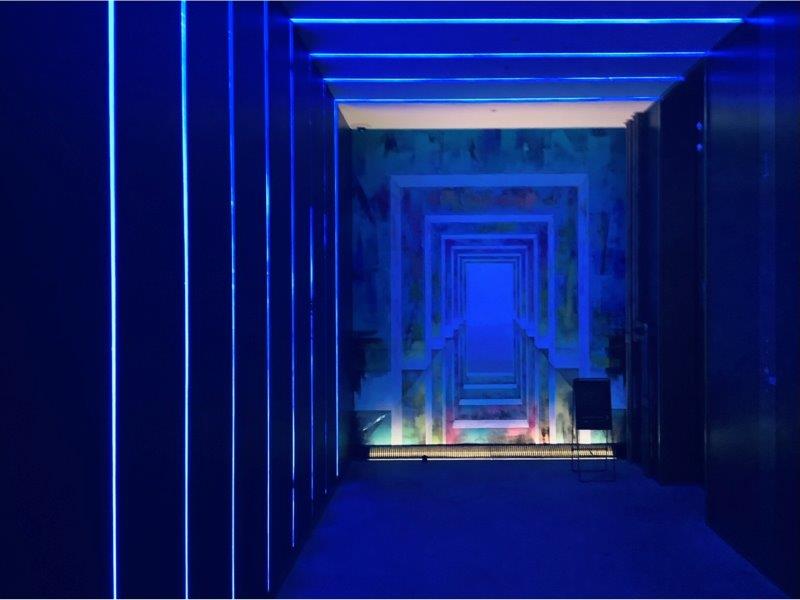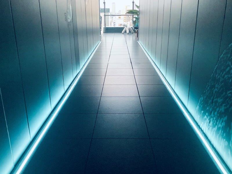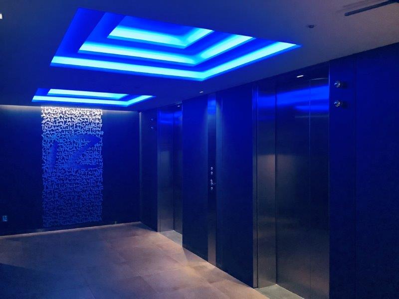 メディアアートの映える象徴的なエレベーターホールを抜けて客室に向かいます。
