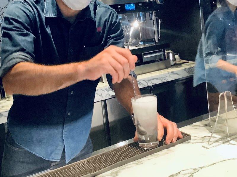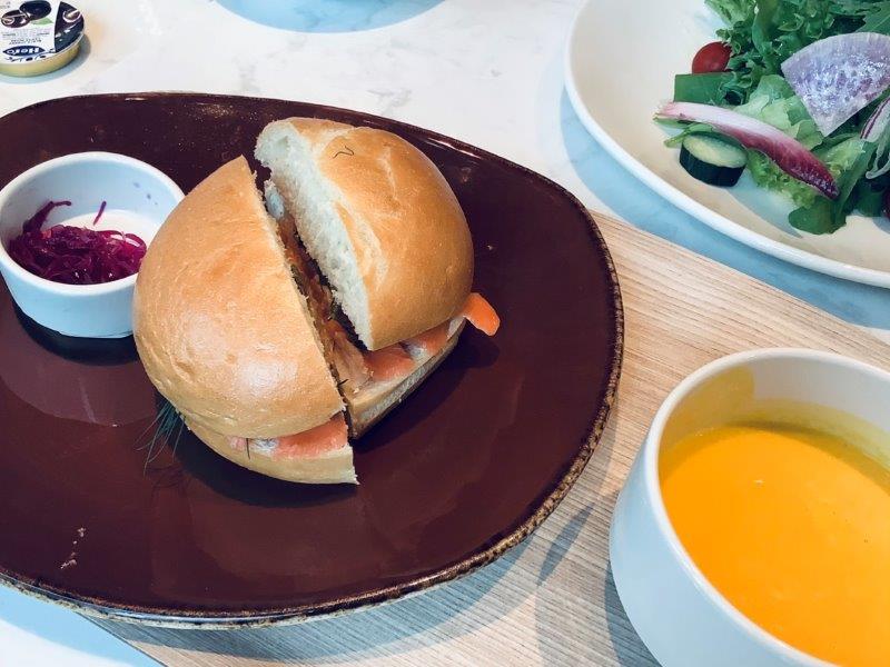 料飲マネージャーのマークさんから特製のベーグルサンドを勧められいただくことに。