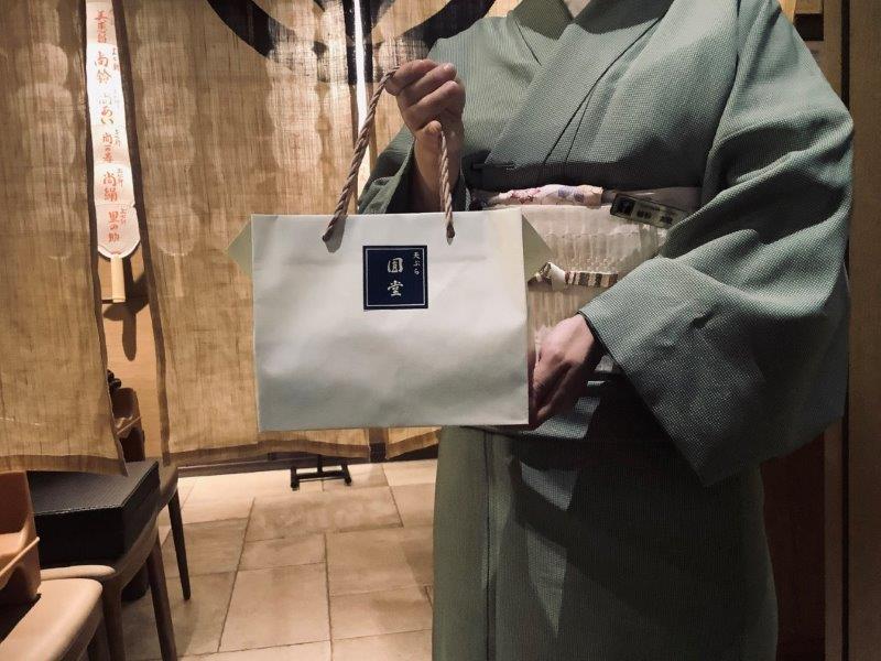 あらかじめ注文していた仕出し弁当をホテル内にあるてんぷらの老舗[圓堂]で受け取ります。