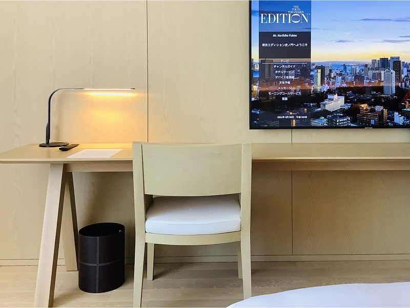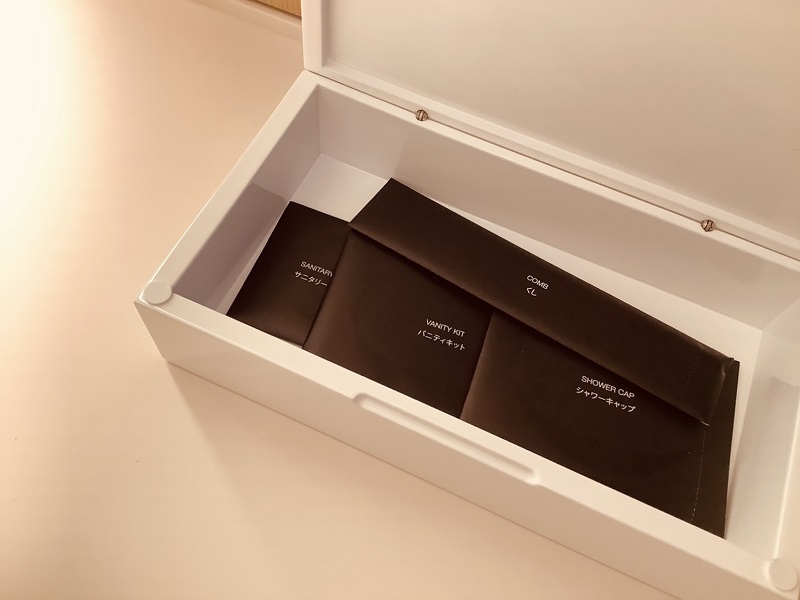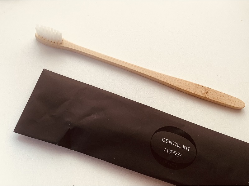 アメニティは包装が紙で歯ブラシやカードキーも竹製、ミネラルウォーターもオリジナルの紙パックと、サスティナビリティを積極的にファッションとして取り入れる姿勢がみてとれます。