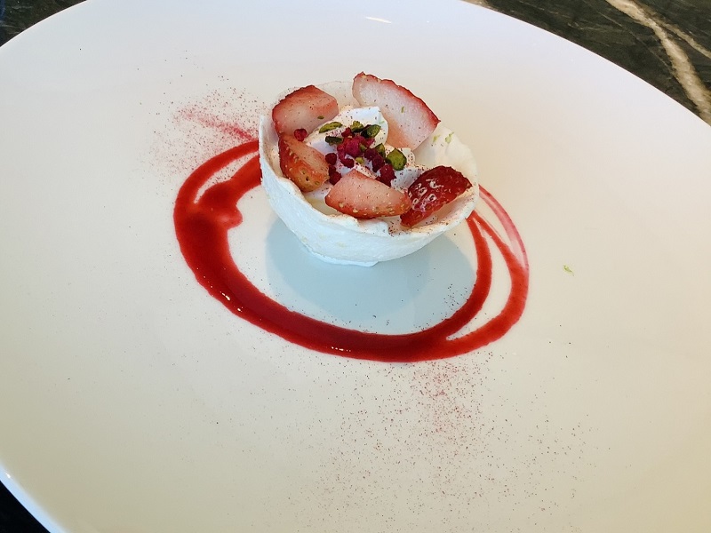 コースはカルパッチョとポーク、イチゴのデザートとリーズナブルながら十分レベルが高く満足のいく内容でした。