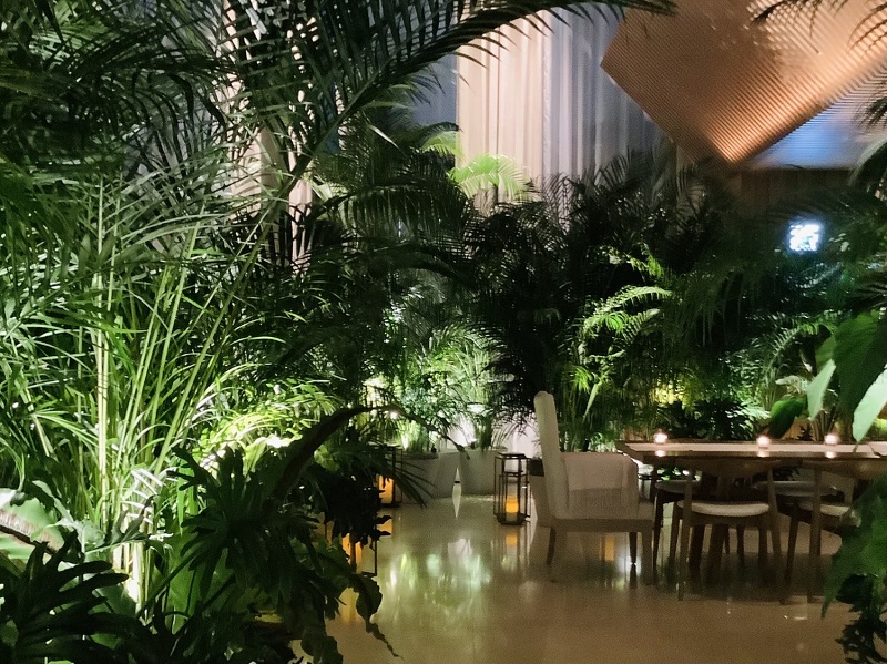 人気もなく、鬱蒼とした植物の影とキャンドルライトのみが空間に佇んでいました。