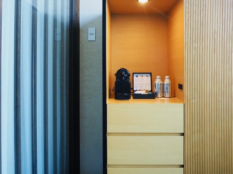 ミニバーなどの什器も箱根の木工芸をモチーフにささやかにリニューアルされています。