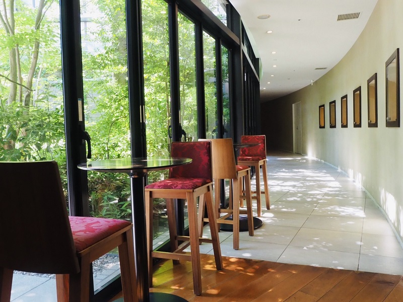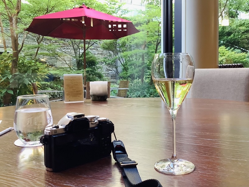 まだ十分に明るいため、中庭の豊かな緑とドリンクを借景に寛がせていただきました。