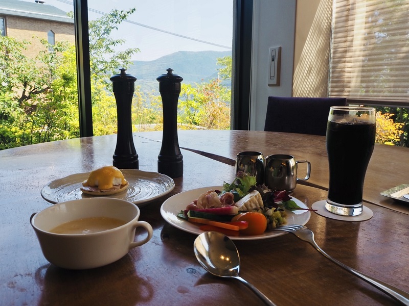 結局今回はチェックインから一度も外に出ず、夕方から翌日昼まで移りゆく箱根の景色とともに、ホテルでの時間の流れを清涼感のなか楽しみました。