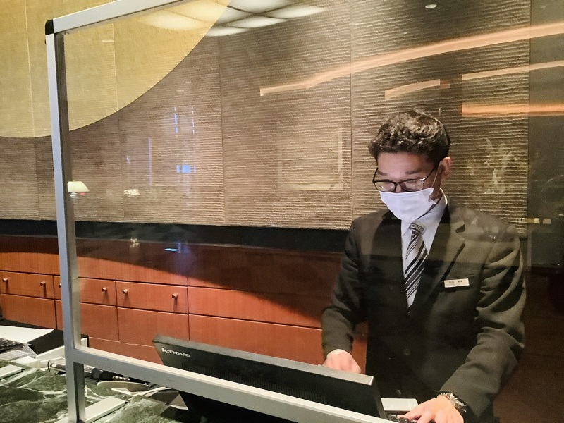 フロントさんもスクリーンごしにいつもと変わらないテキパキとしながらも心のこもった対応をされていました。