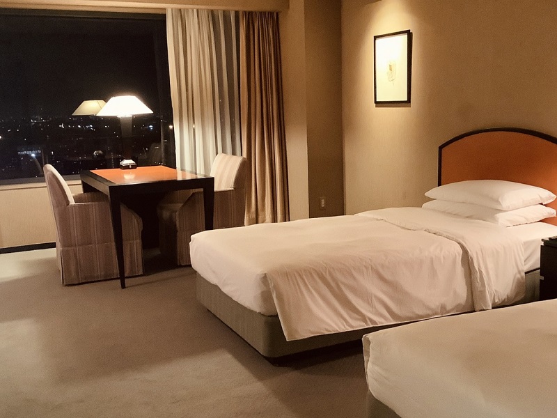 さて、いよいよ入室です。今回は26階40㎡のツインデラックスルームに投宿です。