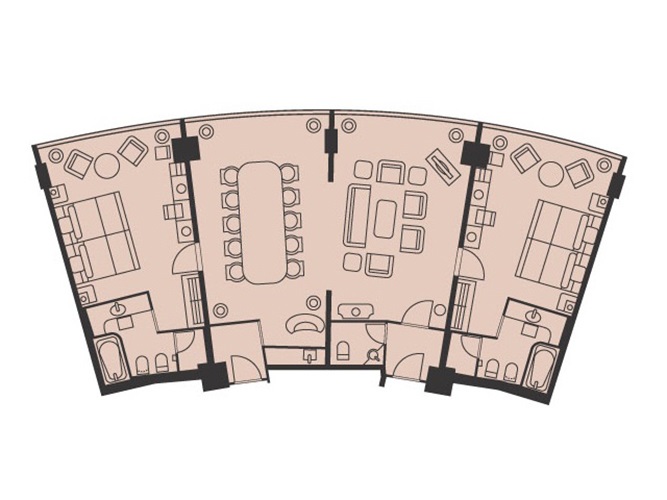 ここは4部屋を抜いた形のスイートで、広さは158.4㎡。