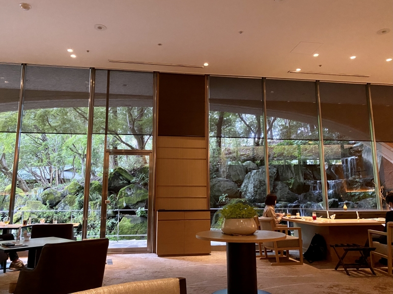大きい窓からは緑が見えてなんとも清々しい眺望のラウンジです。