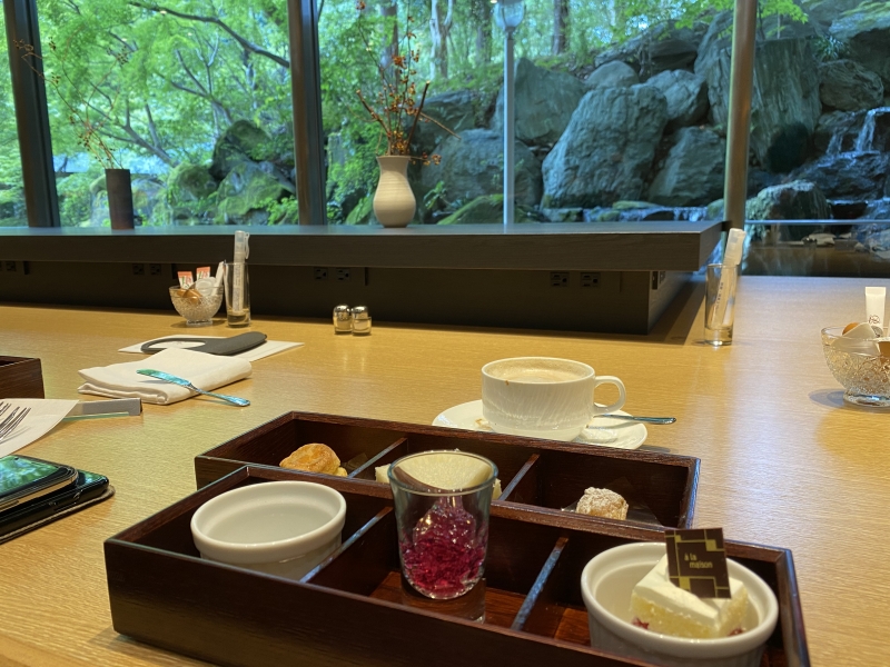 お点前までついたアフターヌーンティからのカクテルタイム、あおい楓や時々遊びに来る鹿を観ながら過ごす時間は大変贅沢で素敵なものでした。