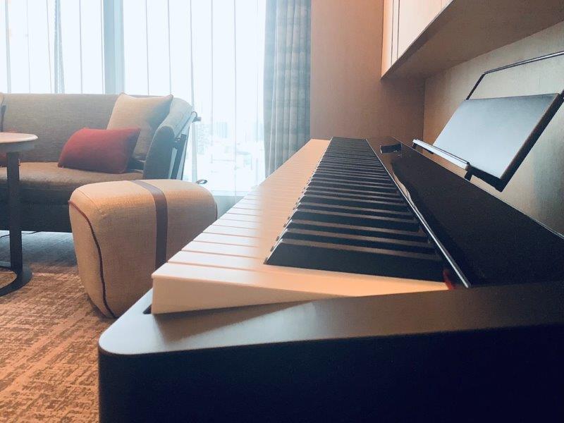 テレビの下にはカシオの電子ピアノが。自動演奏もでき、Bluetoothスピーカーも兼ねています。ピアノが全部屋に設置されているホテルはここだけではないでしょうか。