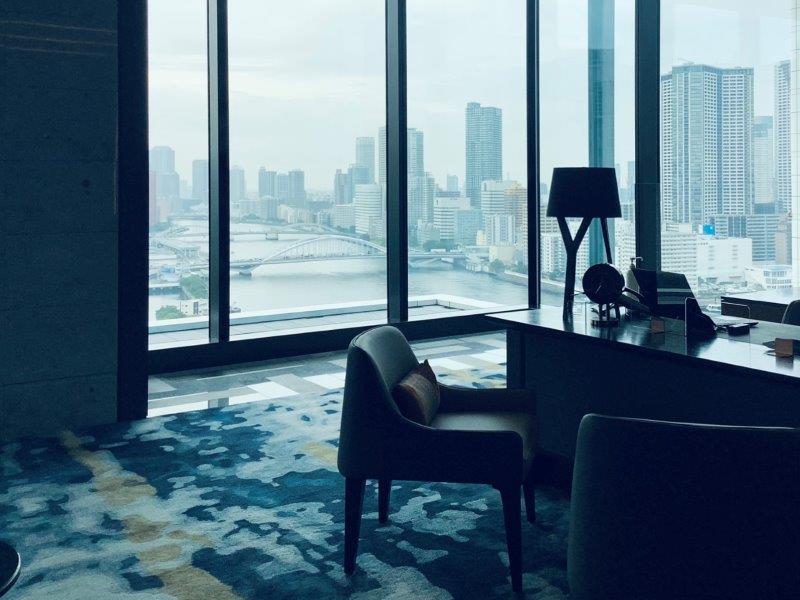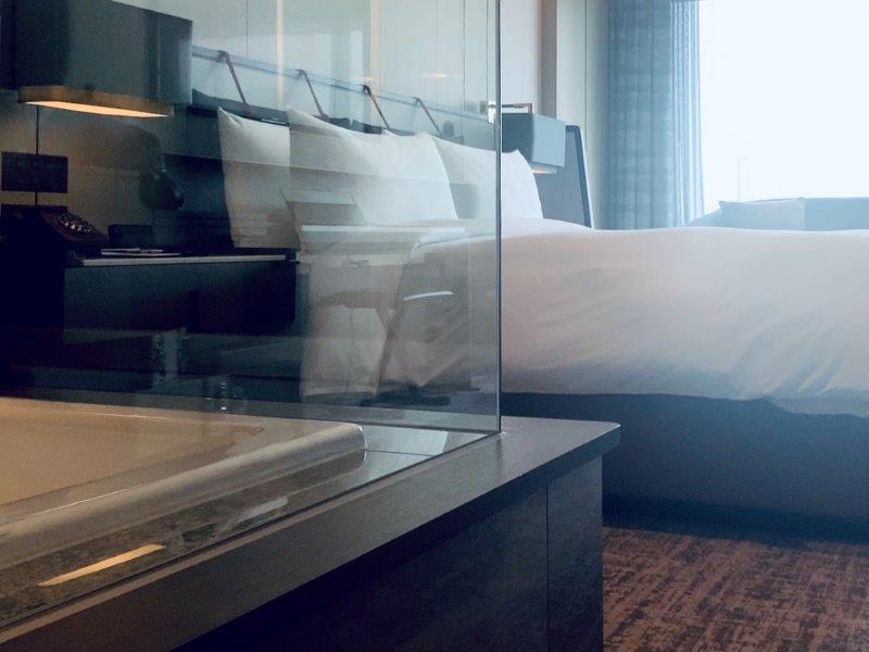 勝どきなどの湾岸都市も一望でき、このホテルができて初めて体験できる視点といえるでしょう。