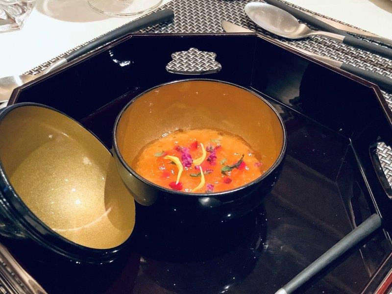 まずはコンソメのジュレからはじまり、サワラ、和牛のコースと続きます。