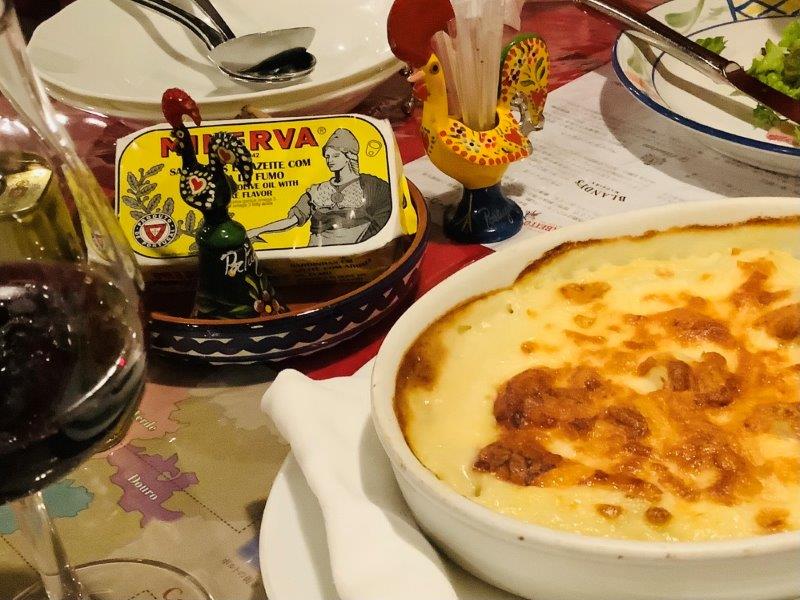 定番のバカリャウ(干し鱈)のグラタンをマディラワインとともにいただきます。