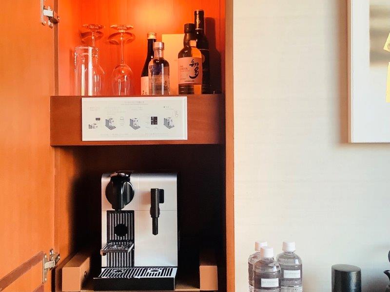 ミニバーのコーヒーマシンは以前のクラシックなLAVAZZAから最新鋭のNESPRESSOに置き換わってました。