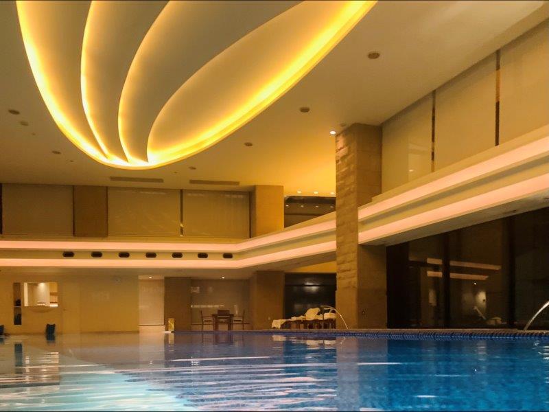 あらかじめ予約した時間にスパに向かい、1人夜のプールを泳ぎます。