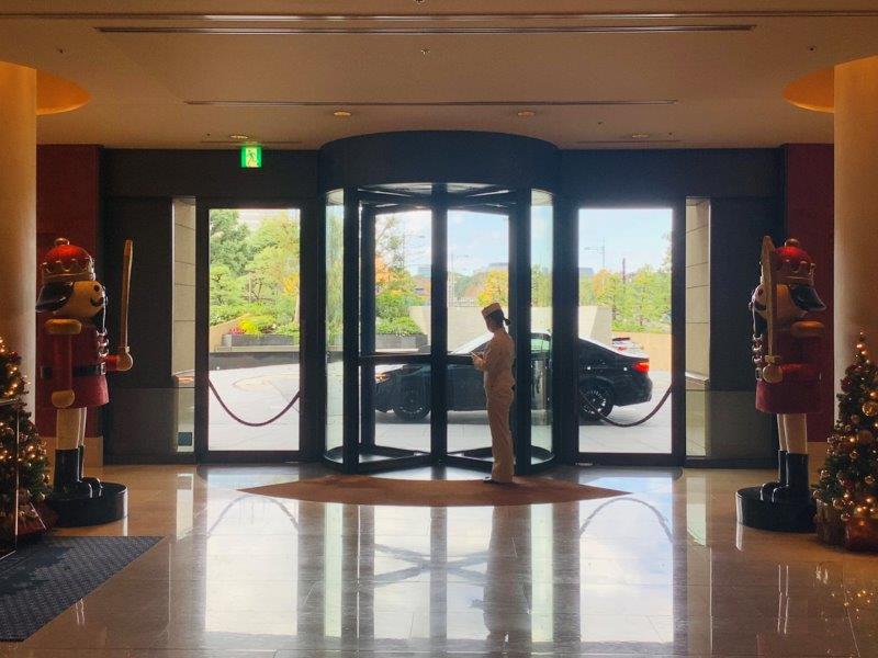 黒いロールスロイス・ファントムをわきに進んでいき、2匹の獅子が構える回転ドアをいつものようにくぐり抜けます。