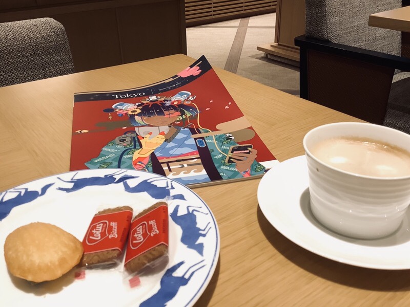 ティータイムでしたので定番のベルギークッキーのLotusとコーヒーをいただいたあと客室へ向かいます。