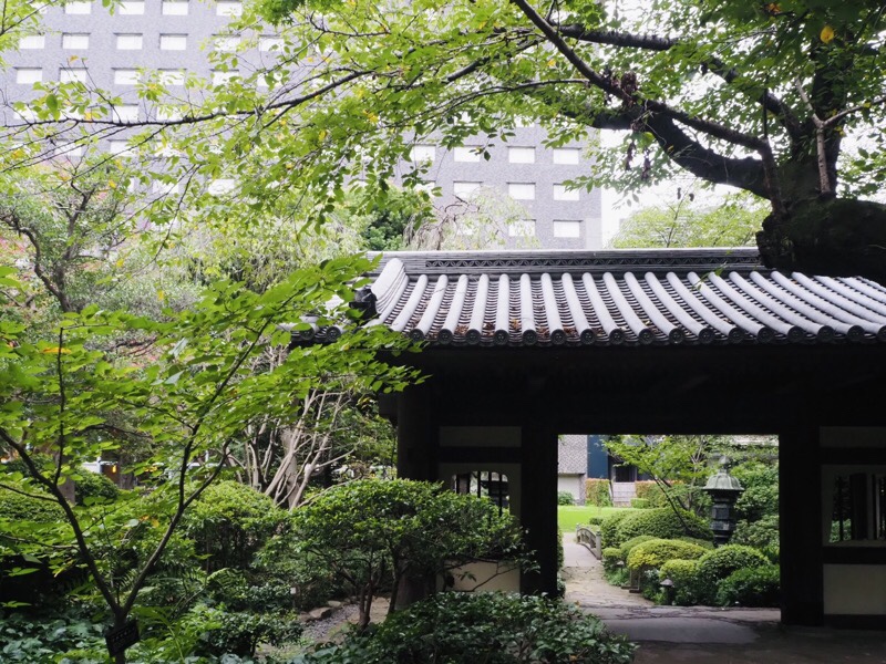 品川駅を降り、石垣をたどりながら木陰に囲まれた坂を登っていくと緑を見おろすホテルの構えがみえてきます。