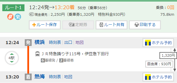 JRを利用して横浜から熱海まで移動する場合を例に説明していきますよ!