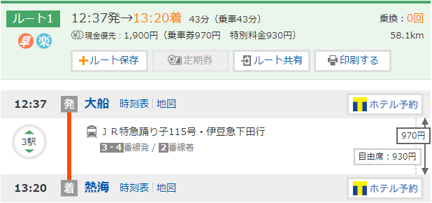 ちなみに、横浜ー大船・大船ー熱海の乗車券と横浜ー熱海の特急券を組み合わせて踊り子号に乗車しても問題ありません。